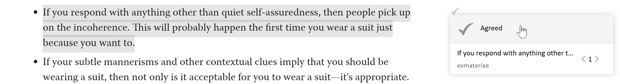 또한 이 사이트에서 제일 인상적이었던 기능은 글의 일부분만을 특별히 선택해서 댓글이나 반응을 달 수 있는 기능이었습니다. 이러한 기능은 확실히 독창적인 디자인입니다.